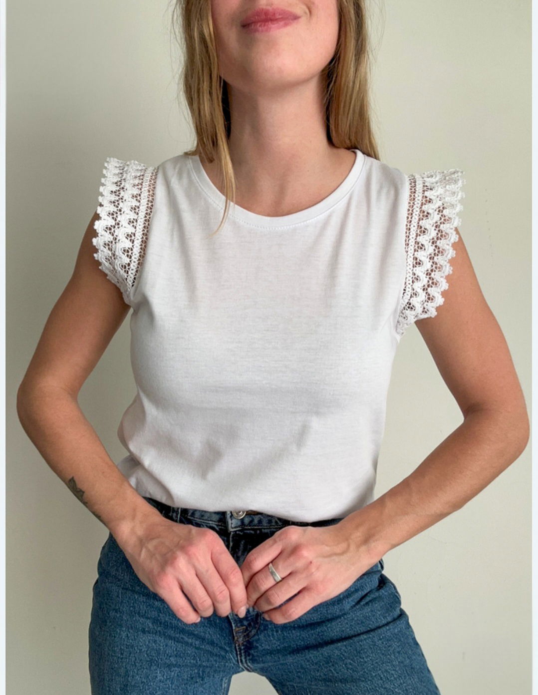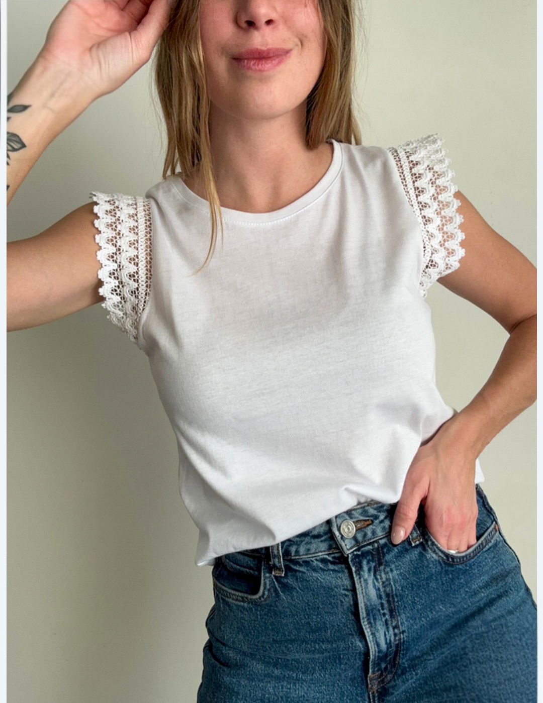 REMERA CON MANGA DE PUNTILLA
