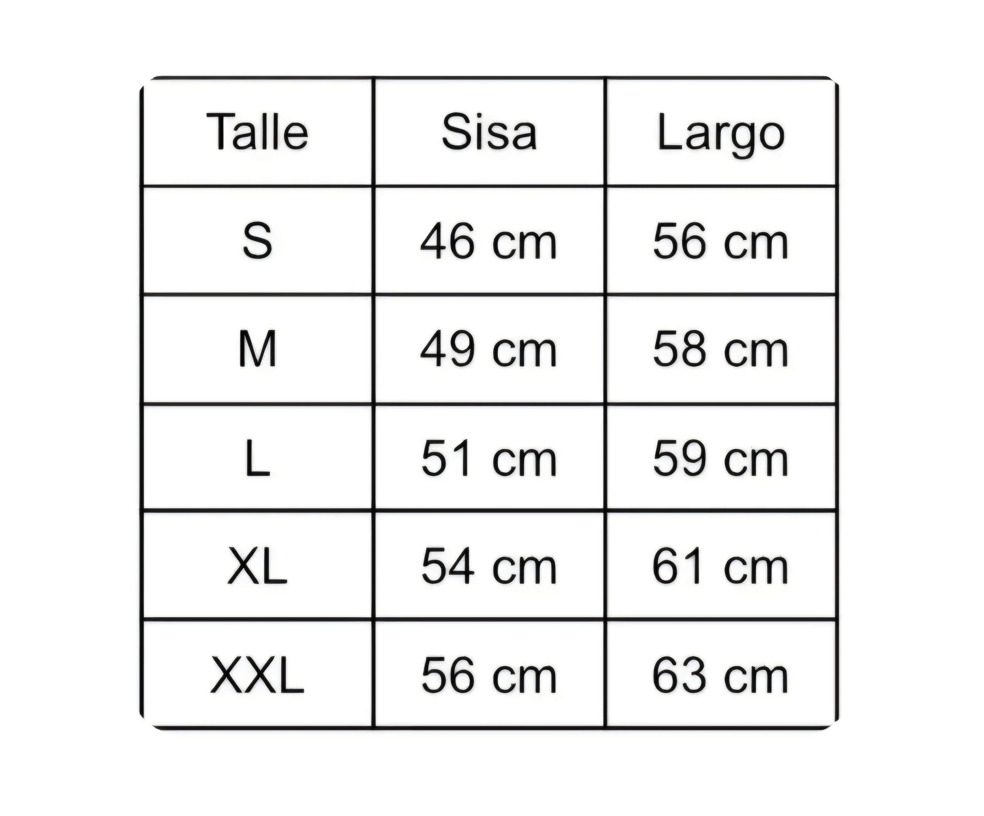 La tabla de talles se encuentra en la última foto.