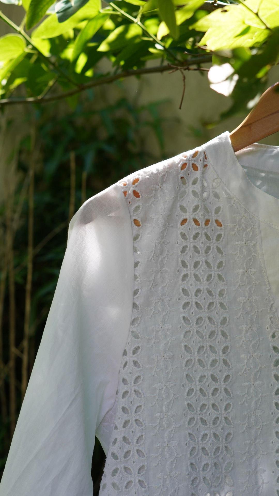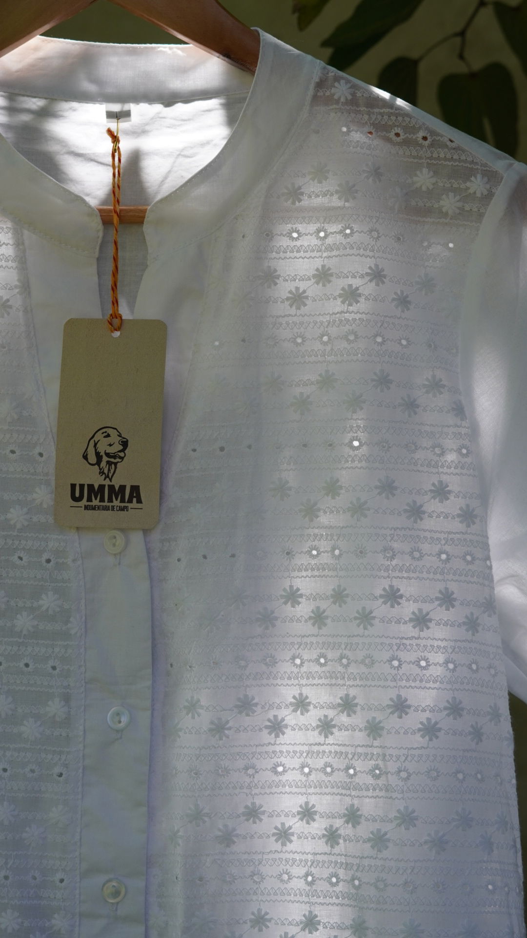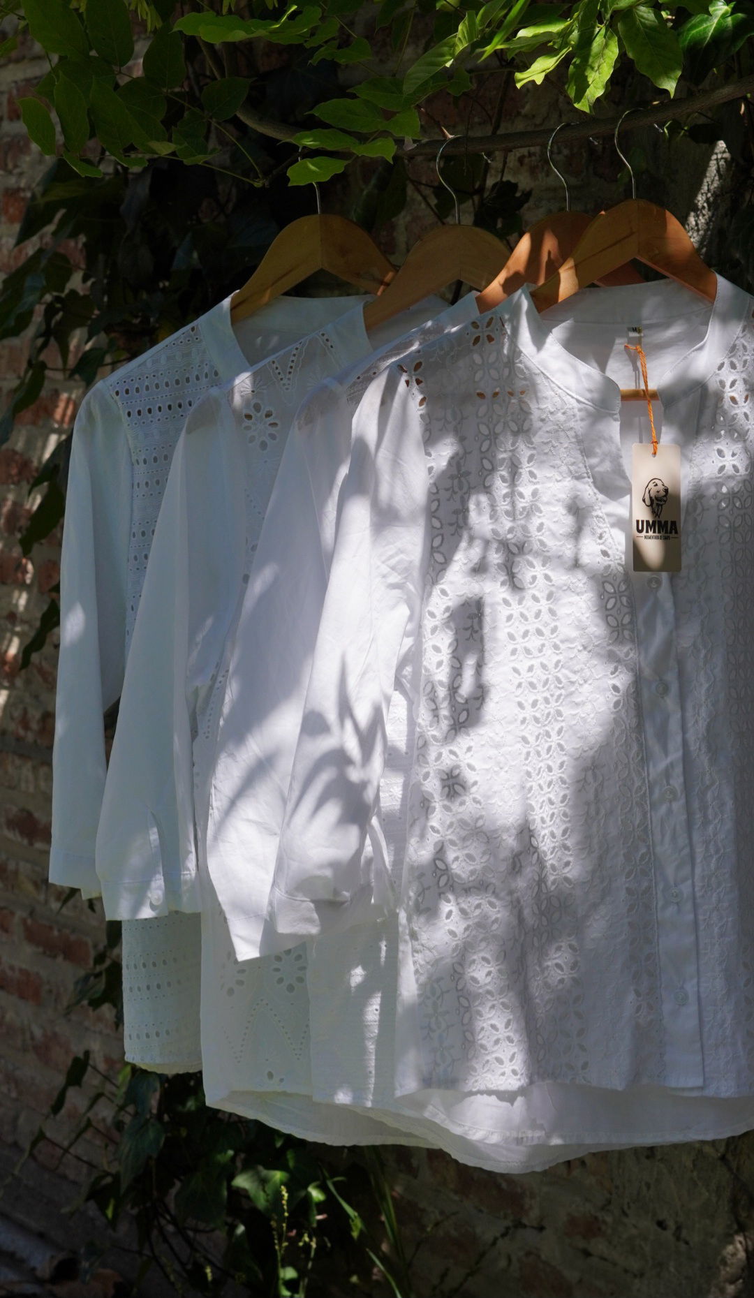 Con un jean, con bombachas de campo, con un sastrero... Quedan bien con todo. Estas camisas tienen manga 3/4, todo el frente tiene detalles de broderie y la espalda toda cubierta. Cuellito mao.