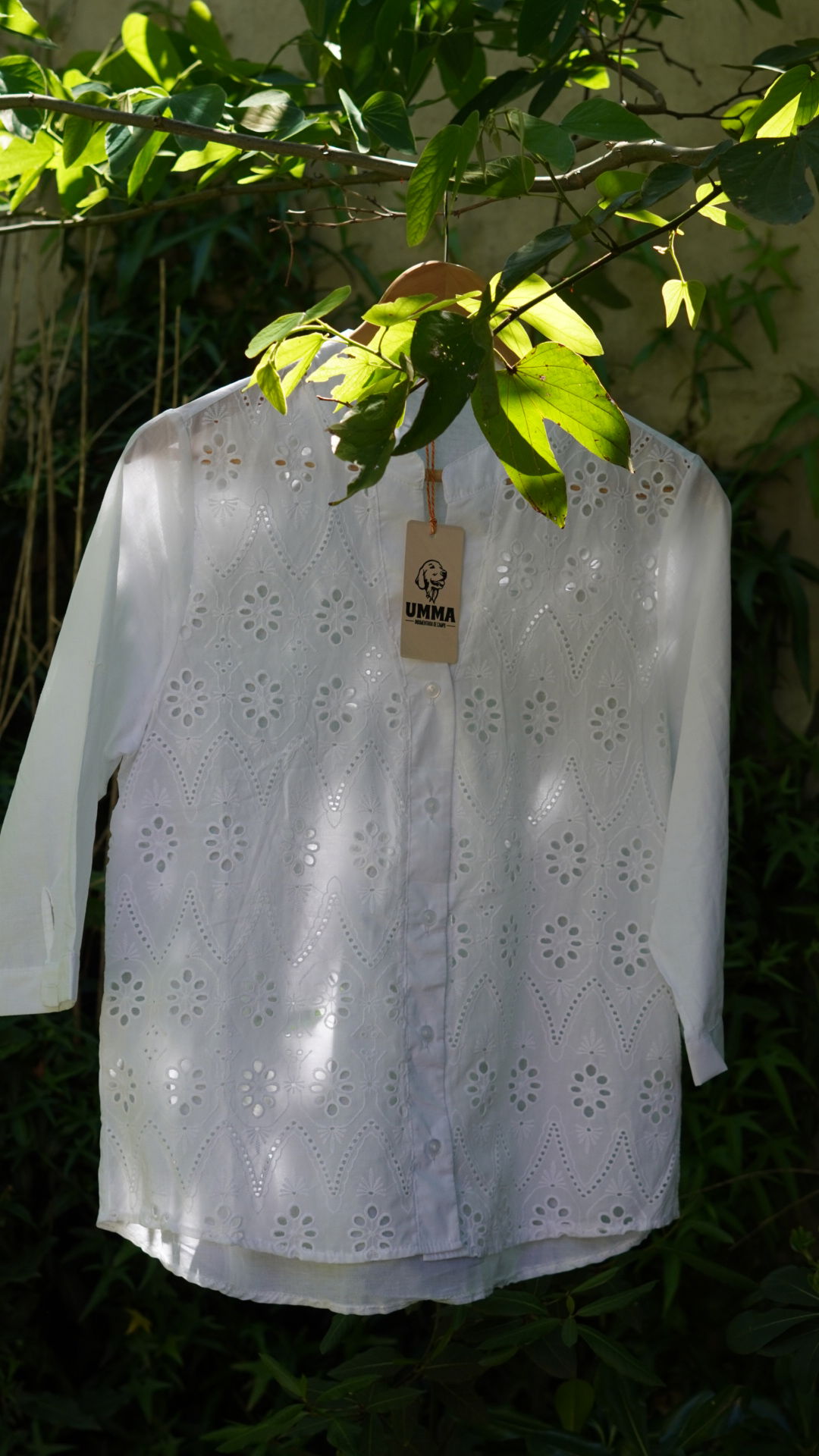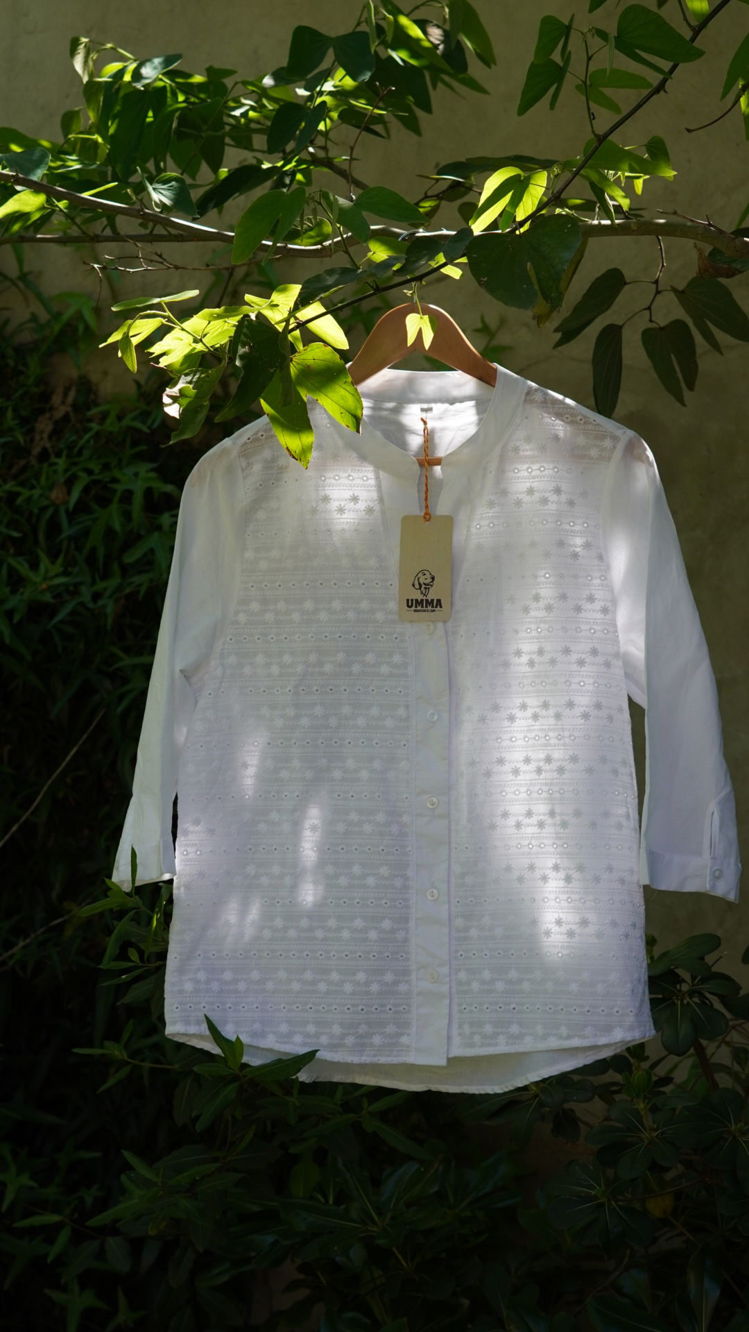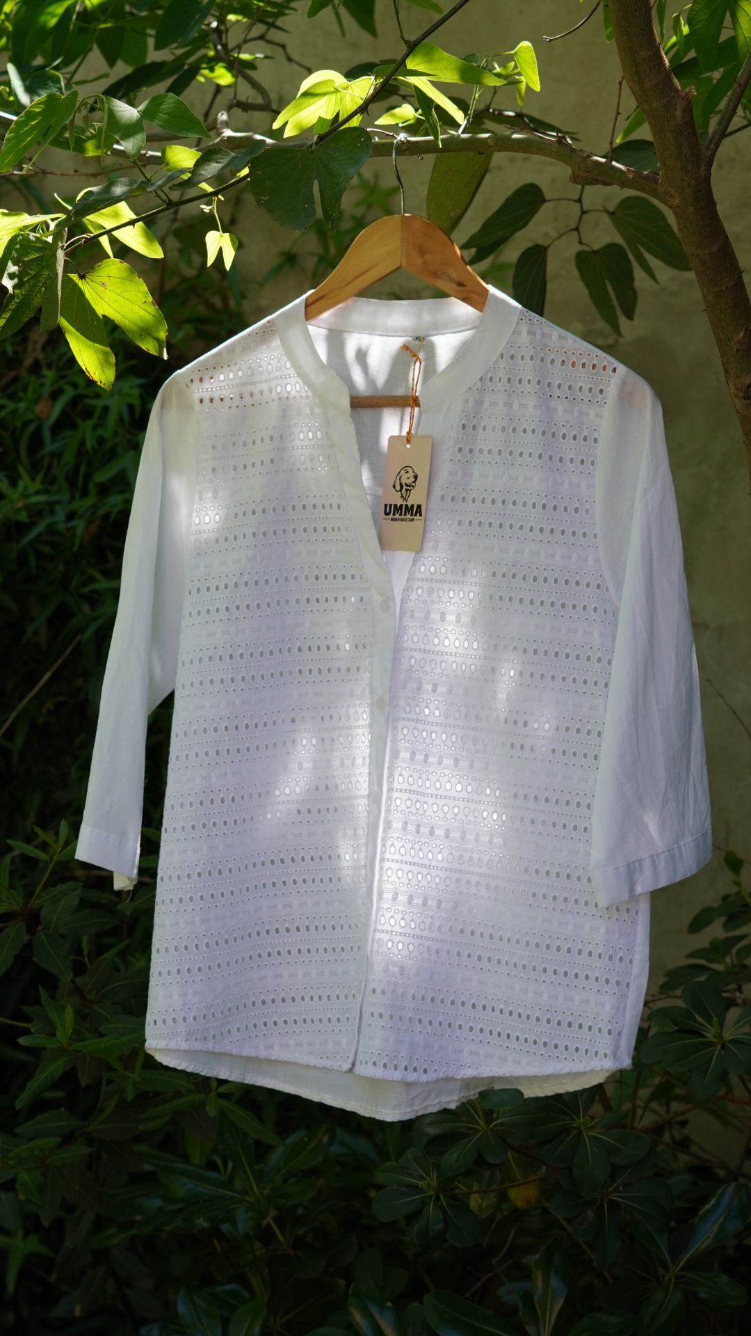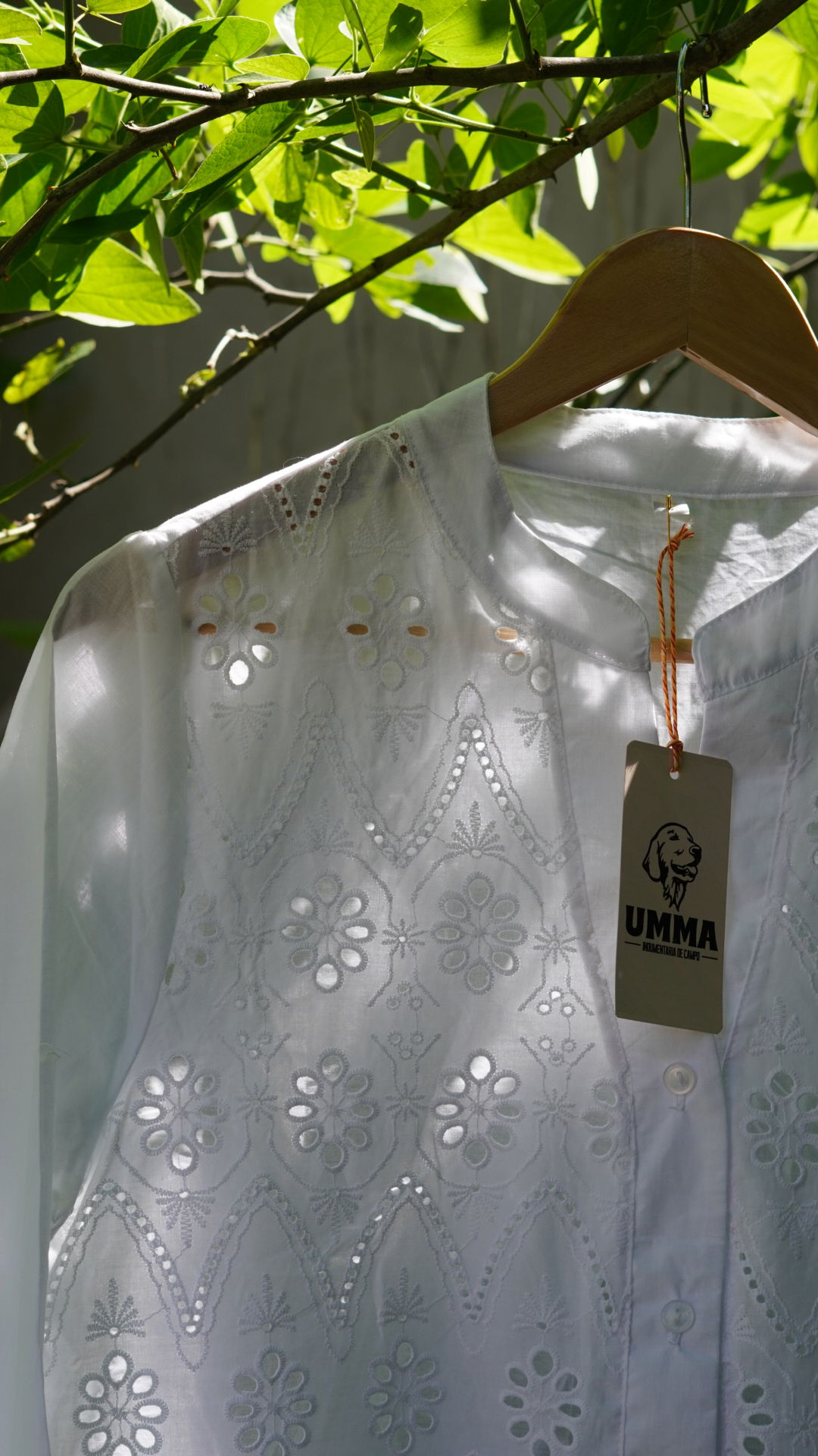 Con un jean, con bombachas de campo, con un sastrero... Quedan bien con todo. Estas camisas tienen manga 3/4, todo el frente tiene detalles de broderie y la espalda toda cubierta. Cuellito mao.