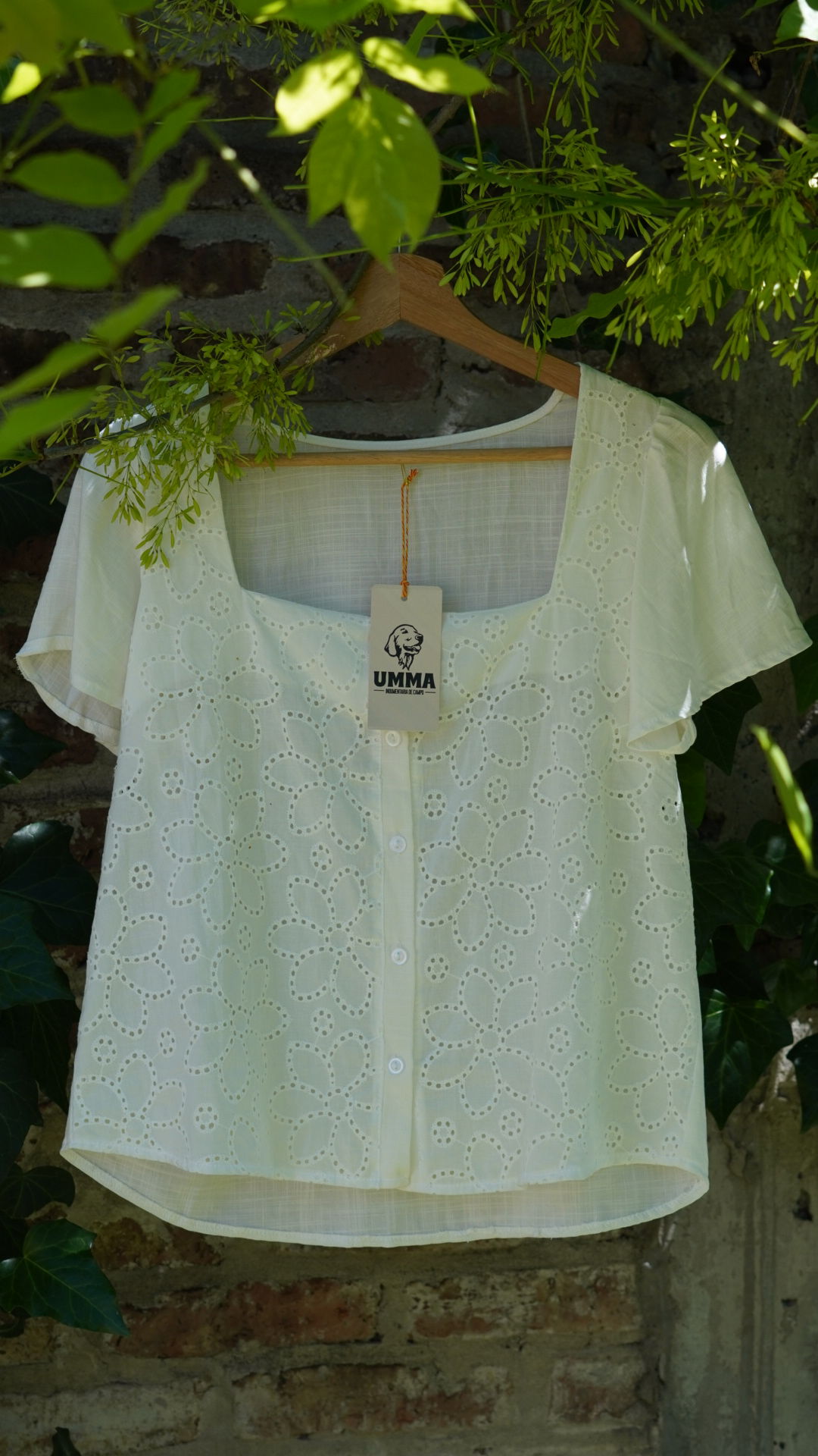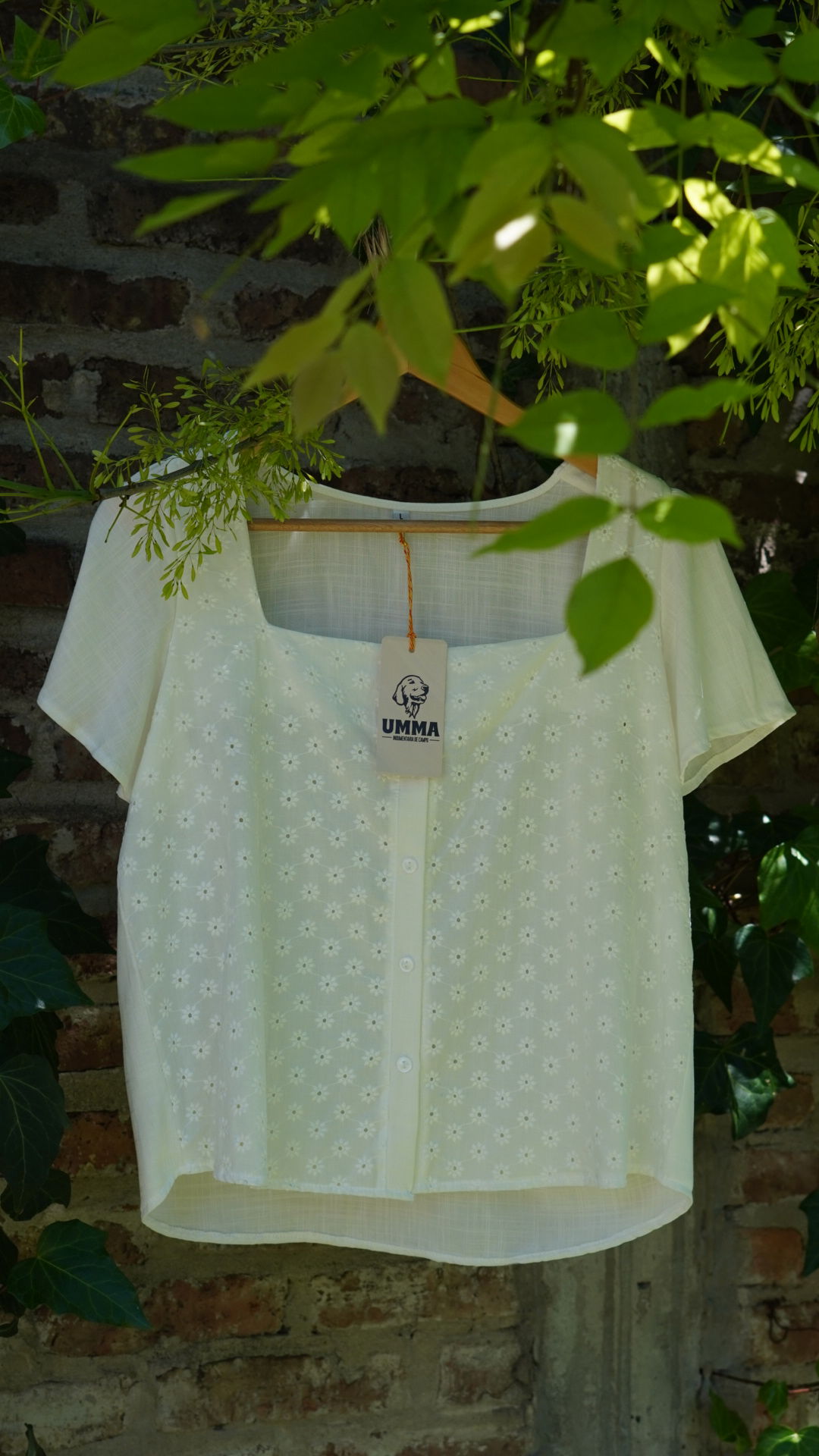 Lo que necesitabas para estos días de calor... Una camisa súper fresquita y delicada. Manga corta, cuello cuadrado y detalles que enamoran.